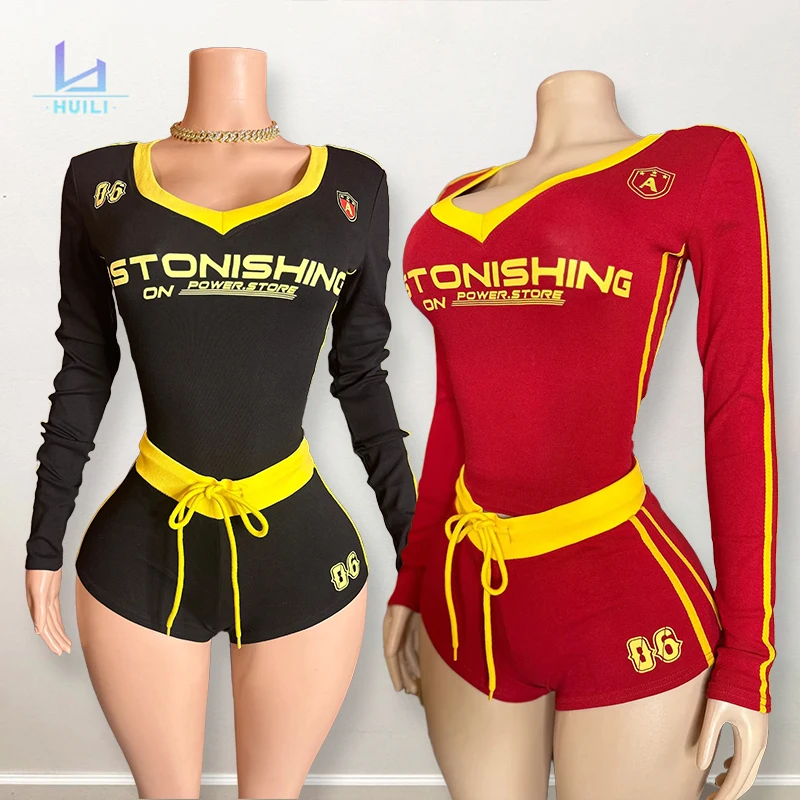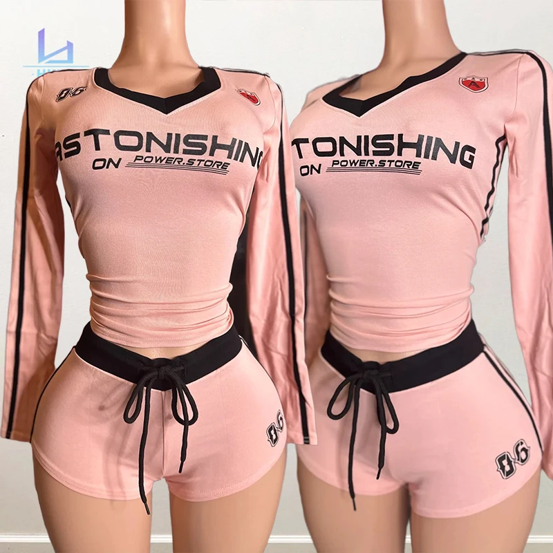Huili Manufacturer Long Sleeve Top & Shorts Workout Two Piece 2025 Women's Loungewear Sports Custom logo Print Activewear Sets